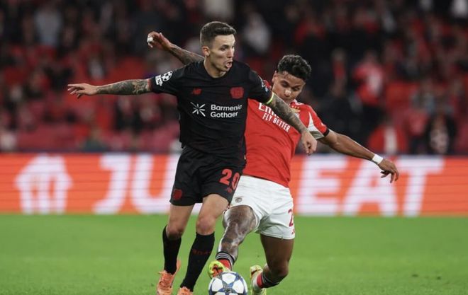 本場(chǎng)比賽穆帥的球隊(duì)曾踢出不錯(cuò)的開局,第33分鐘,奧塔門迪頭槌中柱險(xiǎn)些破門。然而易邊再戰(zhàn),本菲卡卻突然崩盤。第65分鐘,本菲卡防線被勒沃庫森一腳直塞打穿,??松溟T被撲后頭槌補(bǔ)射打進(jìn)制勝進(jìn)球。