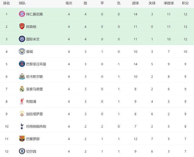 截至目前,歐冠前4輪已經(jīng)全部踢完,英超整體表現(xiàn)非常強勢。在積分榜上,阿森納、曼城、紐卡斯爾和利物浦4支球隊位居前八,此外熱刺排名第10,切爾西位居第12,這2隊和前八球隊的差距并不大。本賽季,英超6隊出戰(zhàn)歐冠,隨時可能全部出線。